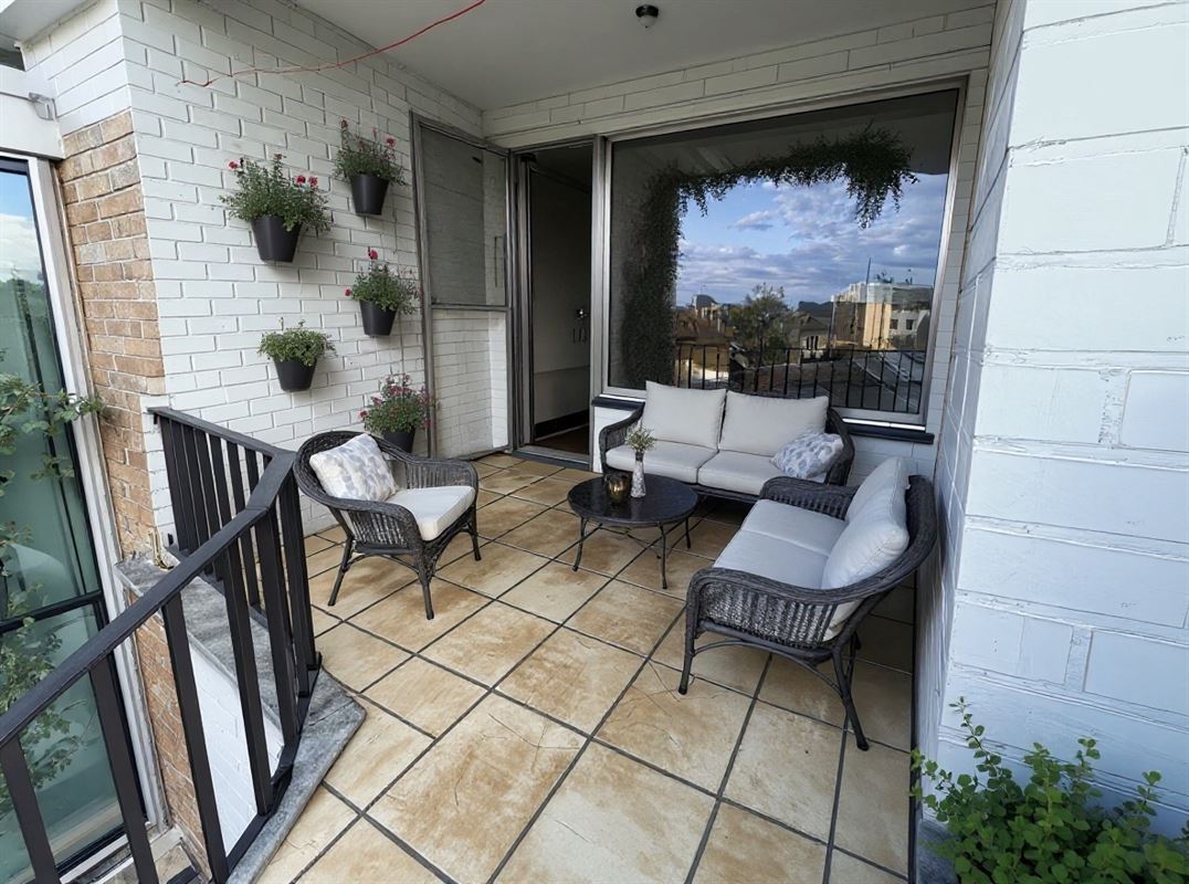Buiten geniet u van een gezellig balkon dat een persoonlijke toets toevoegt aan het appartement en waar plaats is voor ontspanning in de buitenlucht.