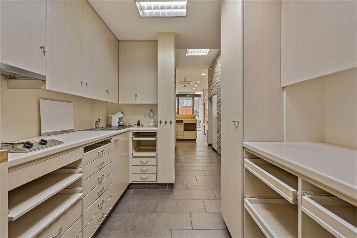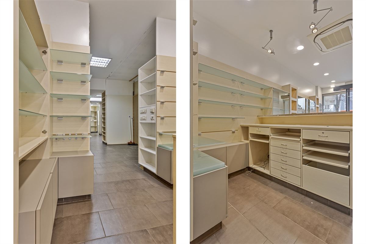 Bij binnenkomst treft u een ruime, lichte ruimte met grote ramen aan de voorzijde, ideaal voor een winkel of commerciële activiteit. De inrichting is modern en stijlvol, met hoogwaardige vitrinekasten en ruime opbergmogelijkheden.
