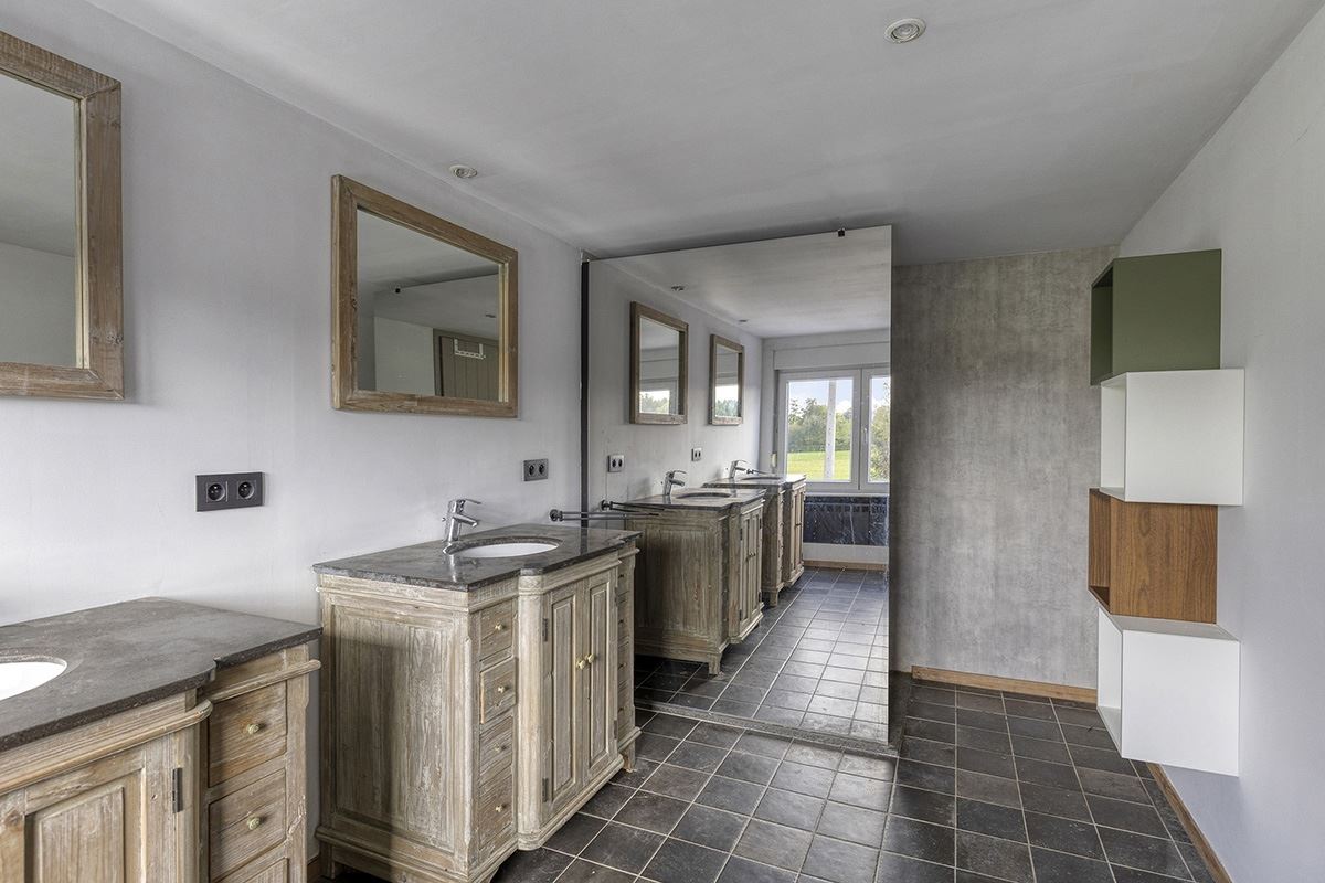 De stijlvolle  tweede badkamer op de 1ste verdieping is uitgerust met dubbele wastafels,  toilet en een comfortabele inloopdouche, ideaal voor uw dagelijkse routine. Het huis beschikt ook over een handige wasruimte (ook uitgerust met douche) die veel extra opbergruimte biedt.