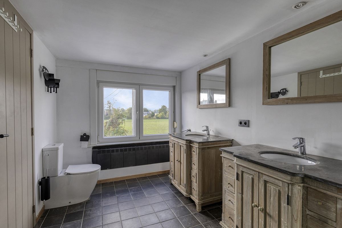 Deze woning telt 2 badkamers  waarvan 1 voorzien met een ligbad op het gelijkvloers met een groot en zeer gerieflijk lavabomeubel. Naast de badkamer op het gelijkvloers kunt u het eerste  van twee toiletten terugvinden.