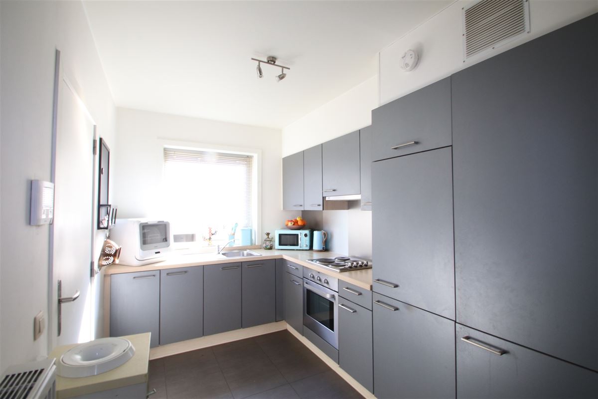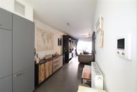 De ruimte van 43m² is functioneel ingedeeld met een open geïnstalleerde woonkeukenruimte die maximaal comfort biedt. De keuken is uitgerust met alle nodige apparatuur (frigo, kookplaat, dampkap, heteluchtoven en spoelbak), terwijl het aangrenzende woongedeelte zich uitstrekt met veel daglicht dankzij het grote schuifraam aan de achterzijde.