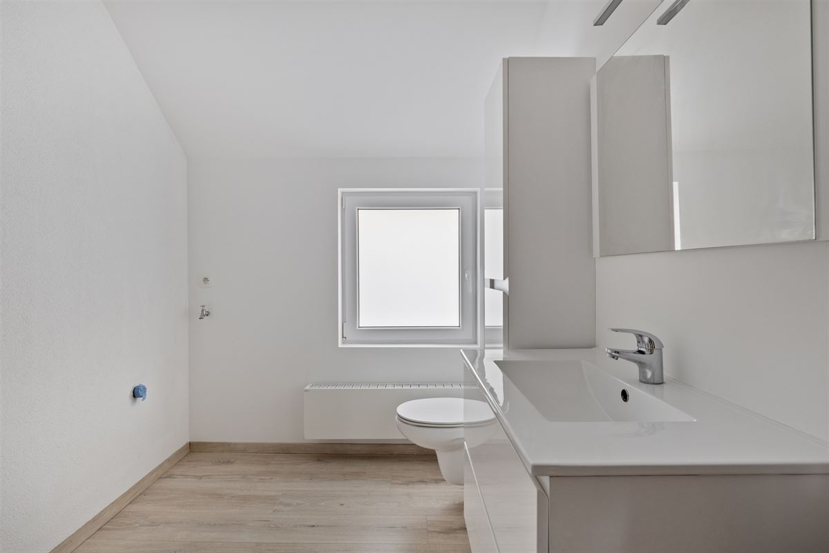 Architecturaal ontwerp: Het huis presenteert zich met een moderne voorkant in wit stucwerk. De zorgvuldig geplaatste ramen zorgen voor optimale lichtinval en een aangename leefomgeving.